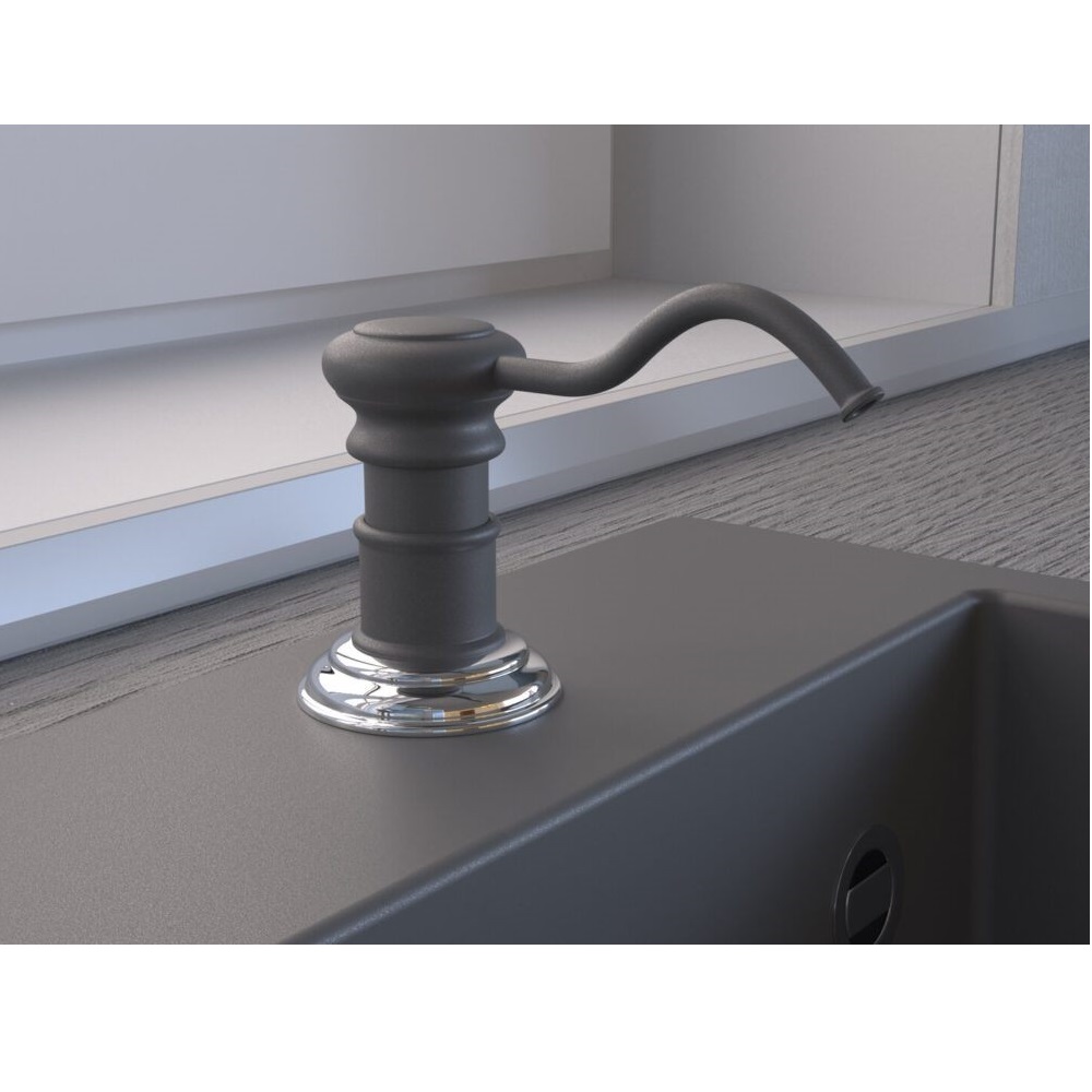 Универсальность использования: дозатор подходит для моющего средства, жидкого мыла или антисептика. Ключевые преимущества: усовершенствованный металлический помповый механизм, превосходящий пластиковые аналоги по надежности и долговечности; удобное заполнение сверху; объем резервуара 500 мл.