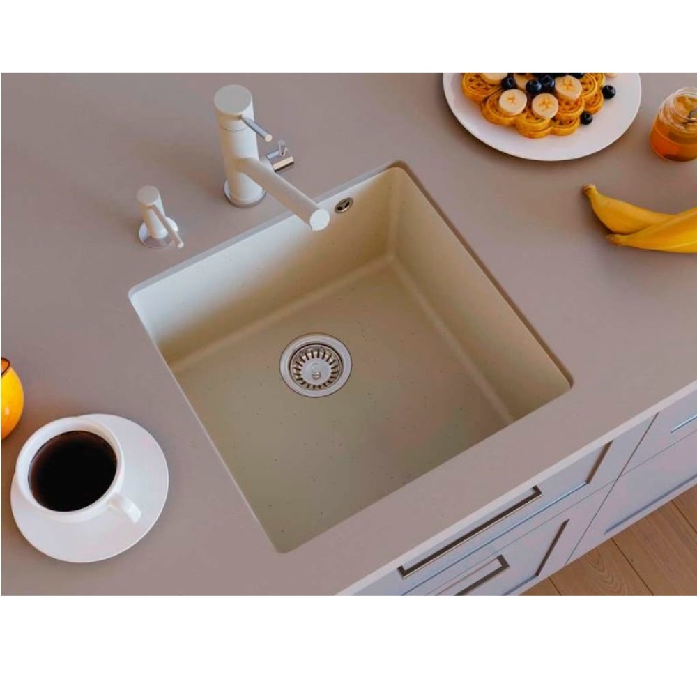 Мойка кухонная Omoikiri из коллекции Bosen 44-U-BL имеет размеры 440х440 мм., изготовлена из искусственного гранита. Форма — прямоугольная, одна чаша без отверстия для смесителя. Сифон в комплекте. Ширина чаши 40. Подстольный монтаж.