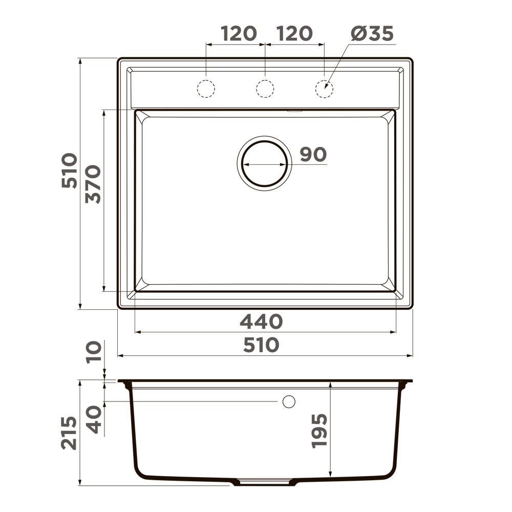 Мойка кухонная Omoikiri из коллекции Daisen 51-ES имеет размеры 510х510 мм., изготовлена из искусственного гранита. Форма — квадратная, одна чаша без отверстия для смесителя. Сифон в комплекте. Ширина чаши 44. Врезной монтаж