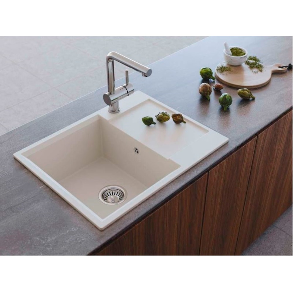 Мойка кухонная Omoikiri из коллекции Daisen 65-PA имеет размеры 650х510 мм., изготовлена из искусственного гранита. Форма — прямоугольная, одна чаша без отверстия для смесителя. Сифон в комплекте. Ширина чаши 36. Врезной монтаж. Имеется крыло.