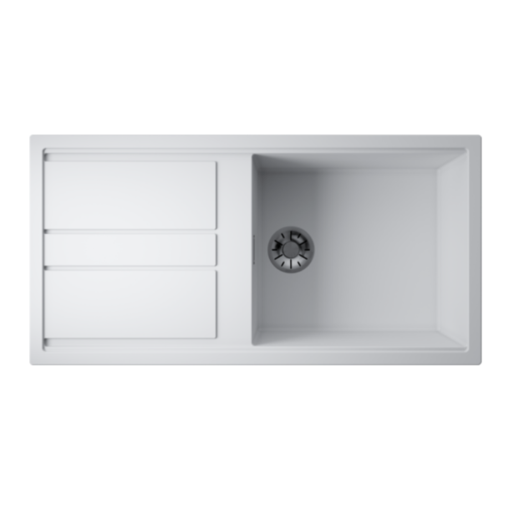 Мойка кухонная Omoikiri из коллекции Kitagawa 100-WH имеет размеры 1000х510 мм., изготовлена из искусственной керамики. Форма — прямоугольная, одна чаша без отверстия для смесителя. Сифон в комплекте. Ширина чаши 47,8. Врезной монтаж. Имеется крыло.
