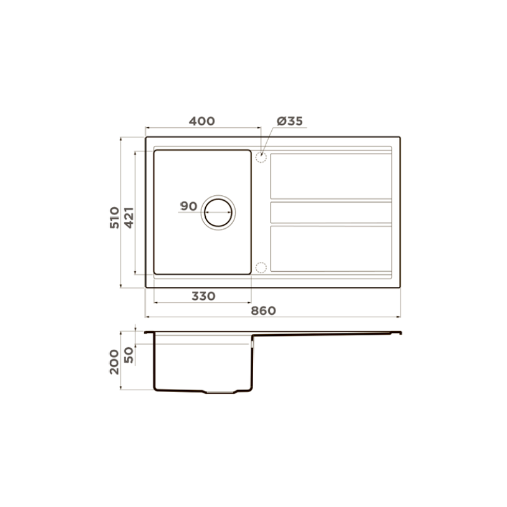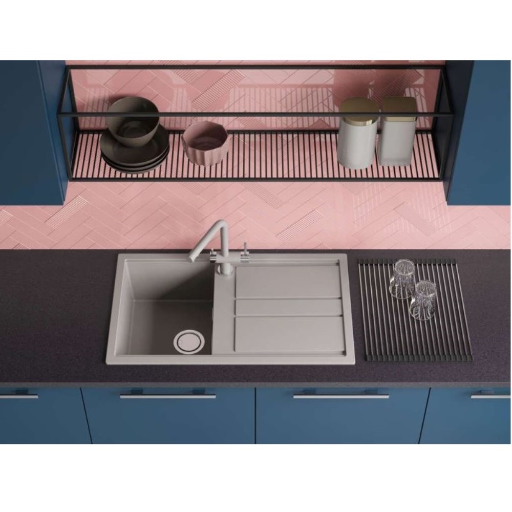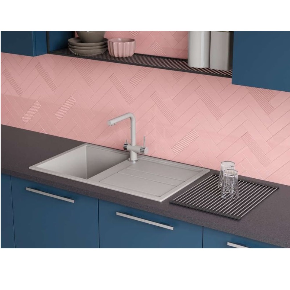 Мойка кухонная Omoikiri из коллекции Kitagawa 86-WH имеет размеры 860х510 мм., изготовлена из искусственной керамики. Форма — прямоугольная, одна чаша без отверстия для смесителя. Сифон в комплекте. Ширина чаши 33. Врезной монтаж. Имеется крыло.