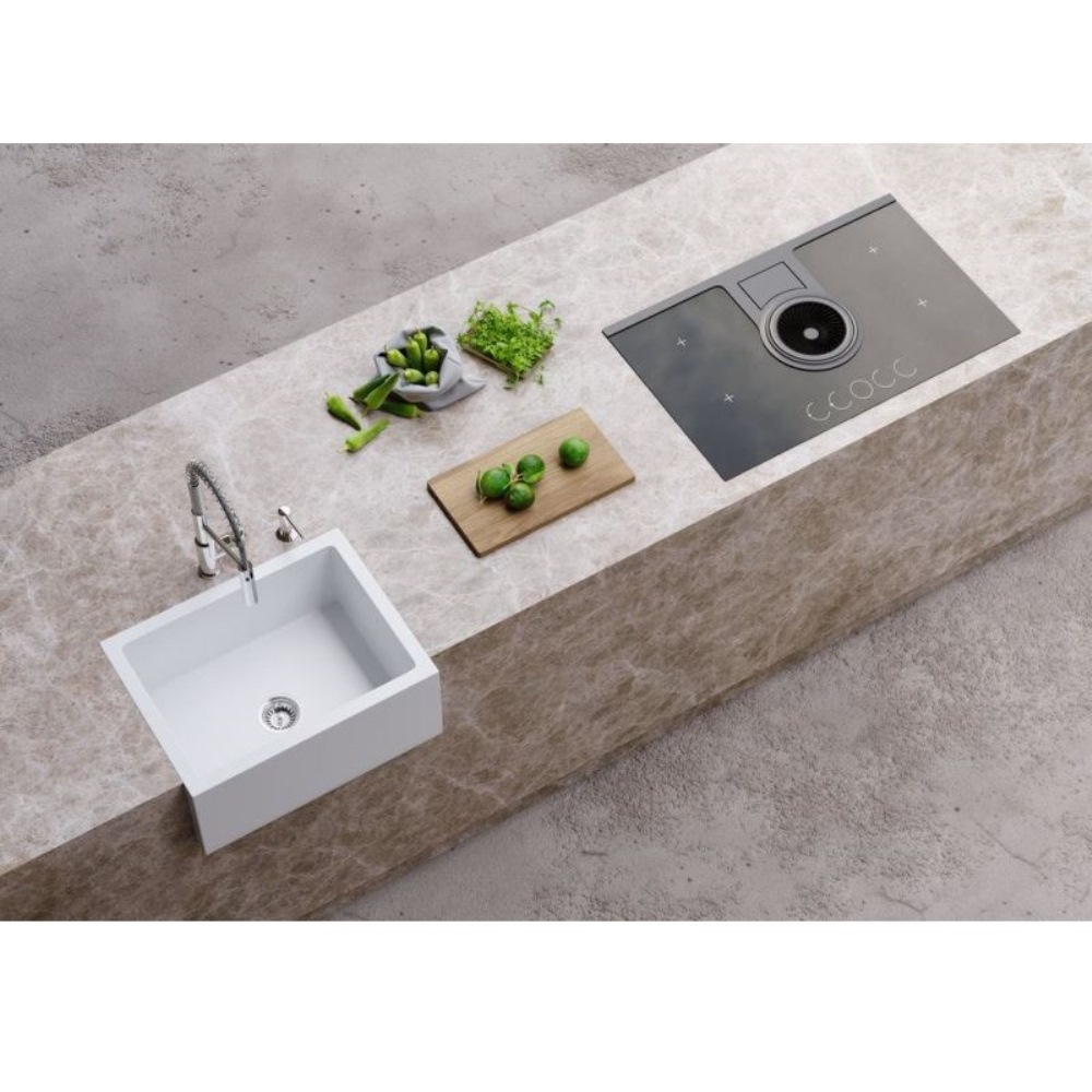 Мойка кухонная Omoikiri из коллекции Mikura 61-WH имеет размеры 610х460 мм., изготовлена из искусственной керамики. Форма — прямоугольная, одна чаша без отверстия для смесителя. Сифон в комплекте. Ширина чаши 54. Фронтальный монтаж.