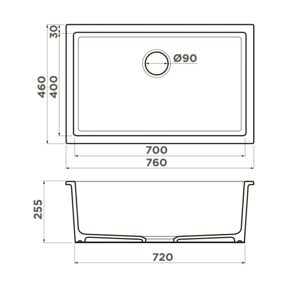Мойка кухонная Omoikiri из коллекции Okinoshima 76-U/I-SB имеет размеры 760х460 мм., изготовлена из искусственной керамики. Форма — прямоугольная, одна чаша без отверстия для смесителя. Сифон в комплекте. Ширина чаши 70. Подстольный и врезной монтаж.