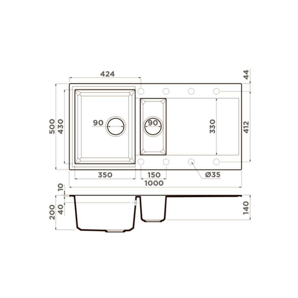 Мойка кухонная Omoikiri из коллекции Sakaime 100-2-ES имеет размеры 1000х500 мм., изготовлена из искусственного гранита. Форма — прямоугольная, одна чаша без отверстия для смесителя. Сифон в комплекте. Ширина чаши 35. Врезной монтаж. Имеется дополнительная чаша и крыло.