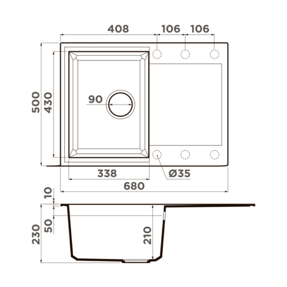 Мойка кухонная Omoikiri из коллекции Sakaime 68-DC имеет размеры 680х500 мм., изготовлена из искусственного гранита. Форма — прямоугольная, одна чаша без отверстия для смесителя. Сифон в комплекте. Ширина чаши 33,8. Врезной монтаж.