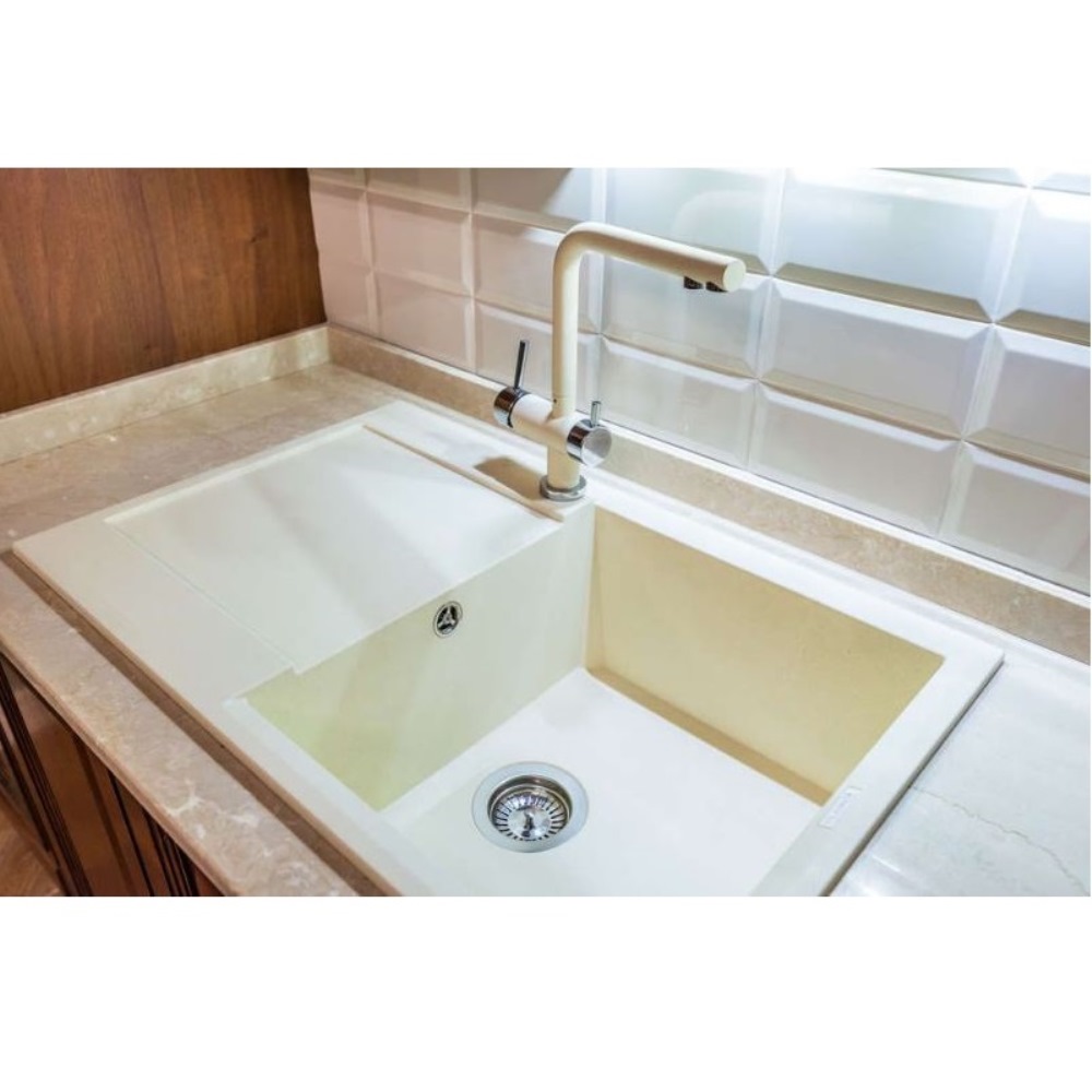 Мойка кухонная Omoikiri из коллекции Sakaime 78-WH имеет размеры 780х435 мм., изготовлена из искусственного гранита. Форма — прямоугольная, одна чаша без отверстия для смесителя. Сифон в комплекте. Ширина чаши 38,6. Врезной монтаж. Имеется крыло.