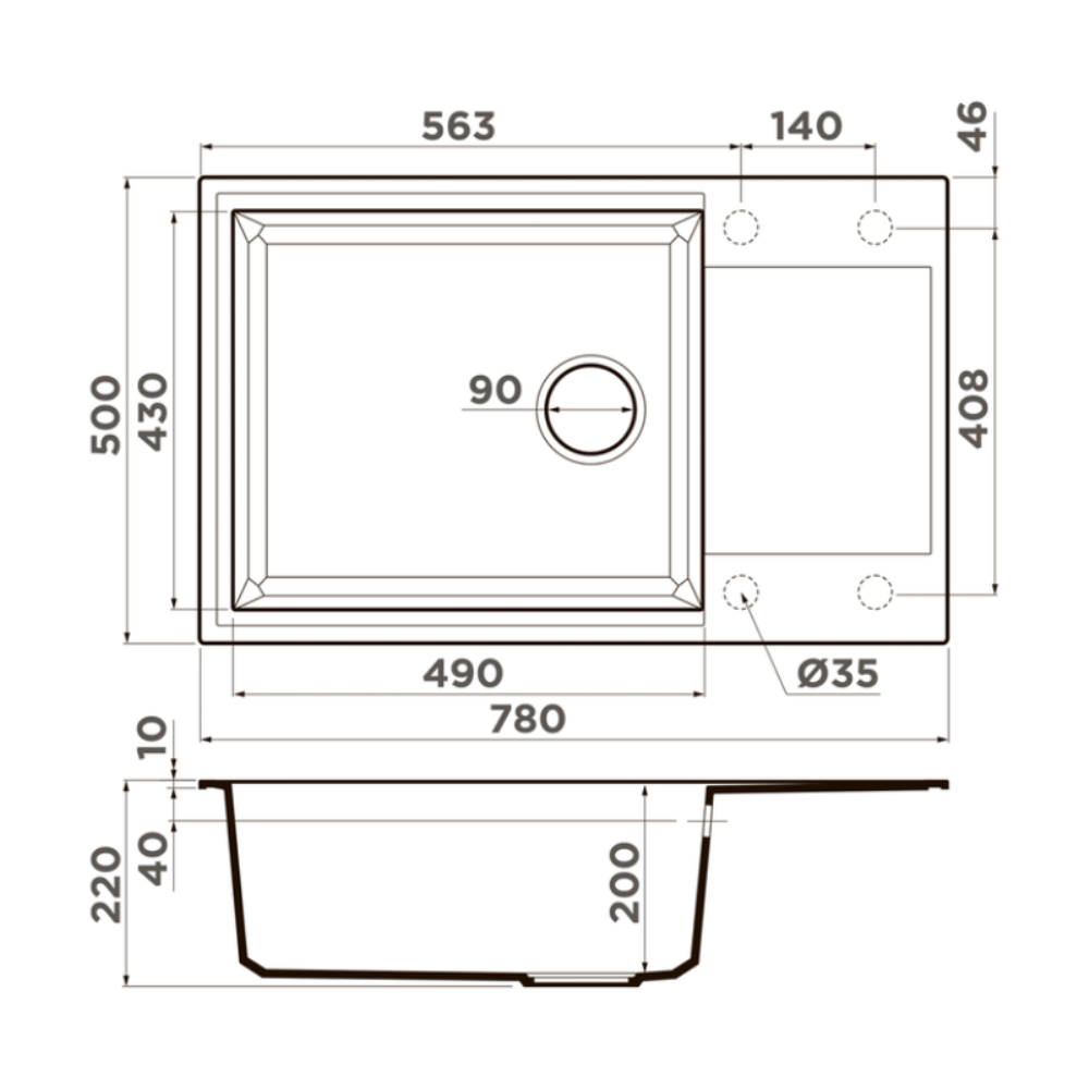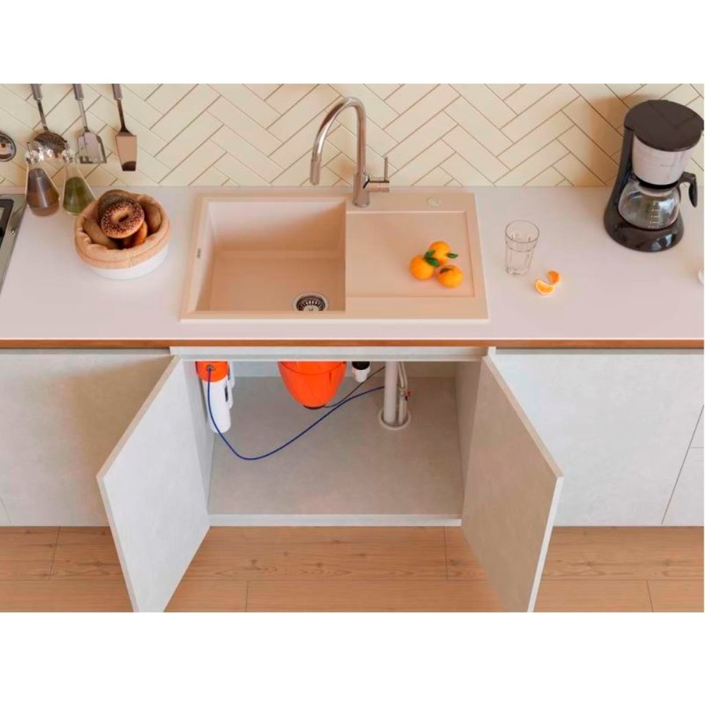Мойка кухонная Omoikiri из коллекции Sakaime 78-LB-WH имеет размеры 780х500 мм., изготовлена из искусственного гранита. Форма — прямоугольная, одна чаша без отверстия для смесителя. Сифон в комплекте. Ширина чаши 49. Врезной монтаж. Имеется крыло.