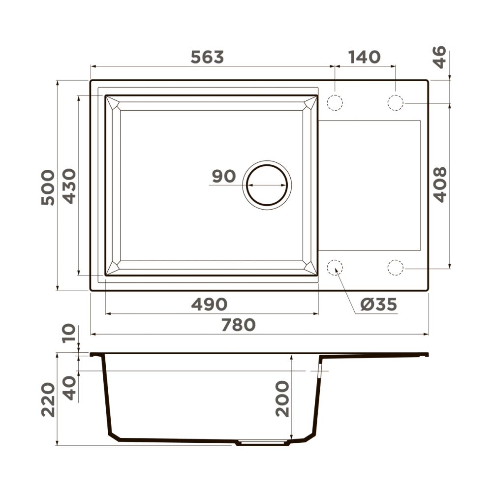 Мойка кухонная Omoikiri из коллекции Sakaime 78-LB-ES имеет размеры 780х500 мм., изготовлена из искусственного гранита. Форма — прямоугольная, одна чаша без отверстия для смесителя. Сифон в комплекте. Ширина чаши 49. Врезной монтаж.