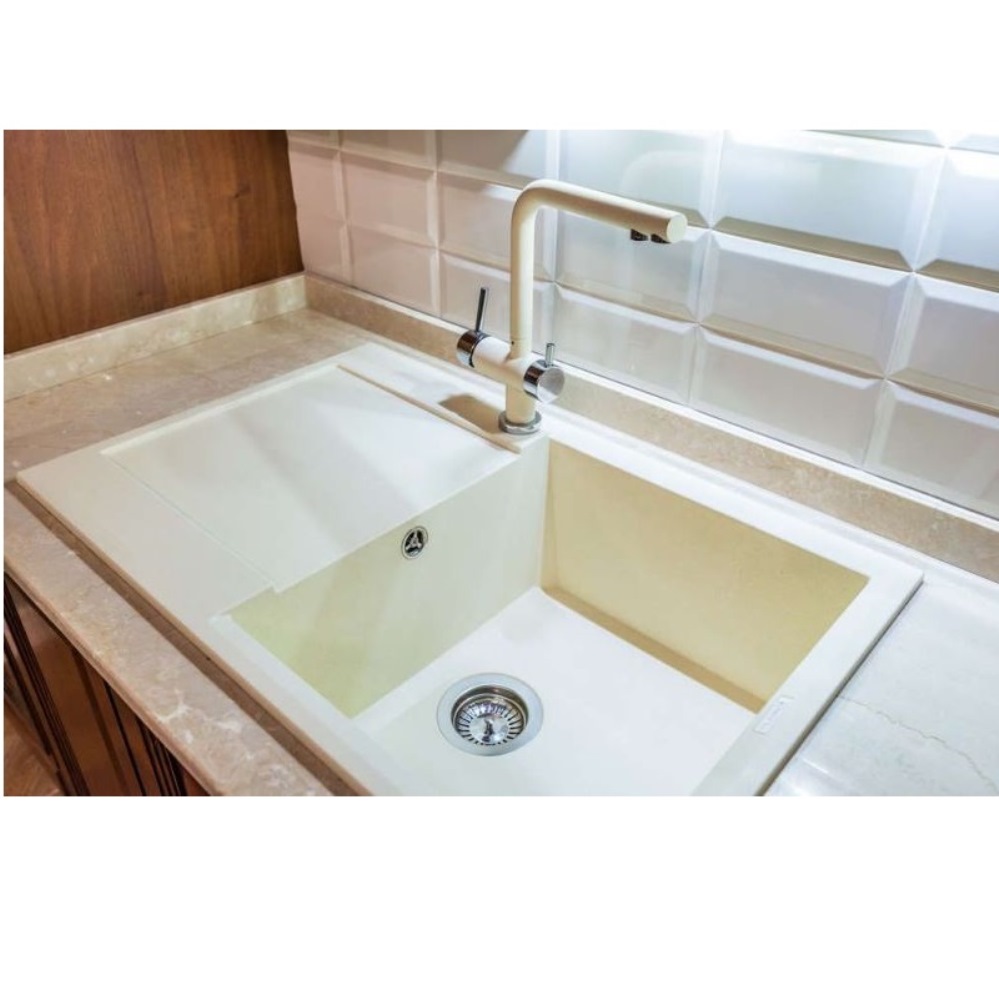 Мойка кухонная Omoikiri из коллекции Sakaime 78-DC имеет размеры 780х435 мм., изготовлена из искусственного гранита. Форма — прямоугольная, одна чаша без отверстия для смесителя. Сифон в комплекте. Ширина чаши 38,6. Врезной монтаж. Имеется крыло.