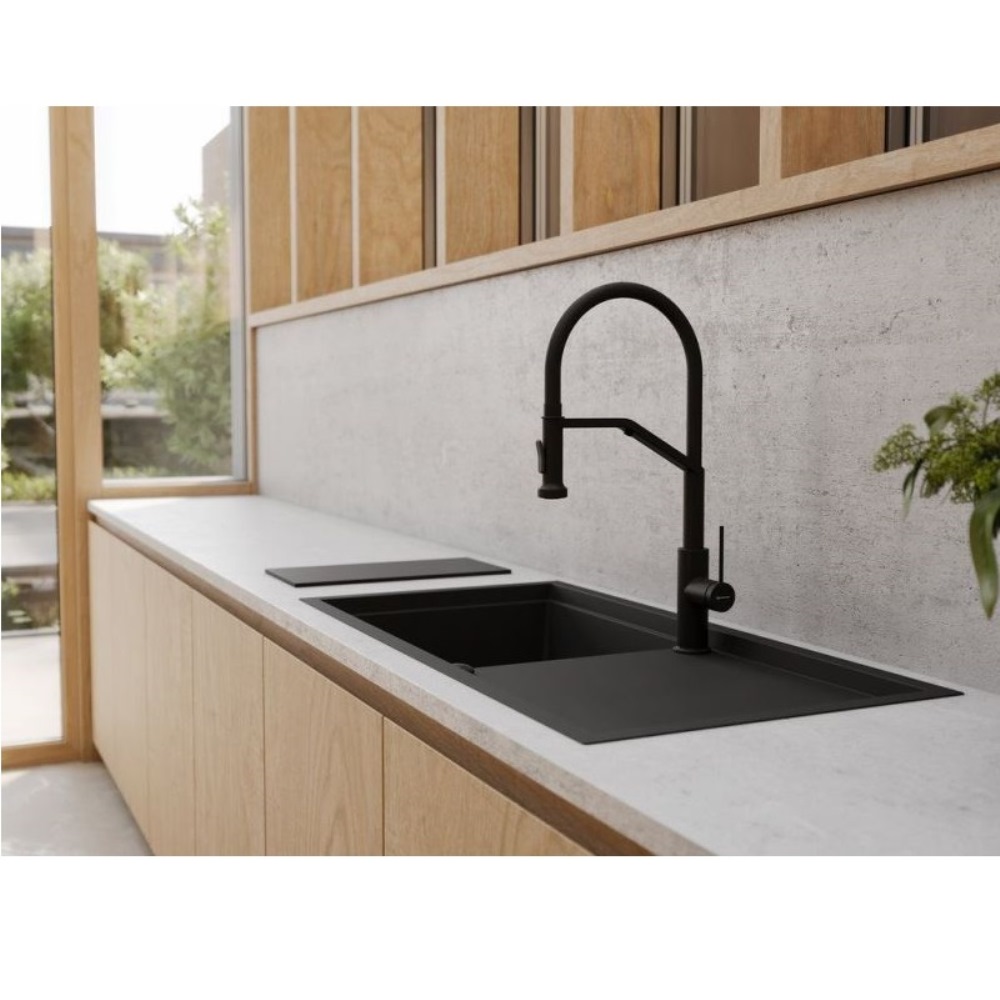 Мойка кухонная Omoikiri из коллекции Sintesi 100-CN имеет размеры 1000х500 мм., изготовлена из искусственной керамики. Форма — прямоугольная, одна чаша без отверстия для смесителя. Сифон в комплекте. Ширина чаши 47. Врезной монтаж. Имеется крыло.