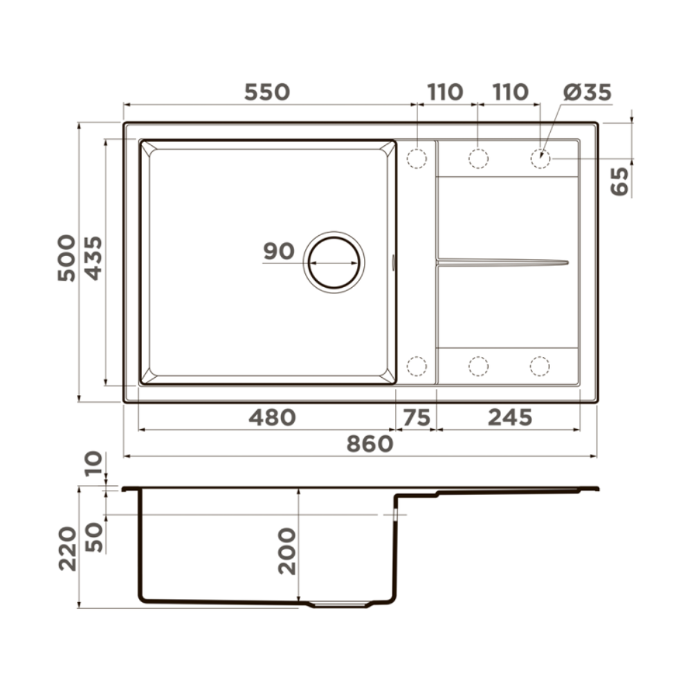 Мойка кухонная Omoikiri из коллекции Sumi 86A-GR имеет размеры 860х500 мм., изготовлена из искусственной керамики. Форма — прямоугольная, одна чаша без отверстия для смесителя. Сифон в комплекте. Ширина чаши 48. Врезной монтаж. Имеется крыло.