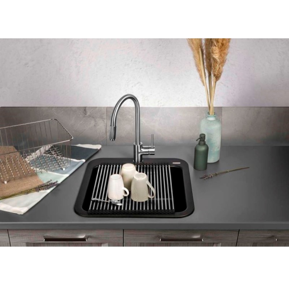 Мойка кухонная Omoikiri из коллекции Tasogare 51-BE имеет размеры 510х510 мм., изготовлена из искусственного гранита. Форма — квадратная, одна чаша без отверстия для смесителя. Сифон в комплекте. Ширина чаши 44. Врезной монтаж.
