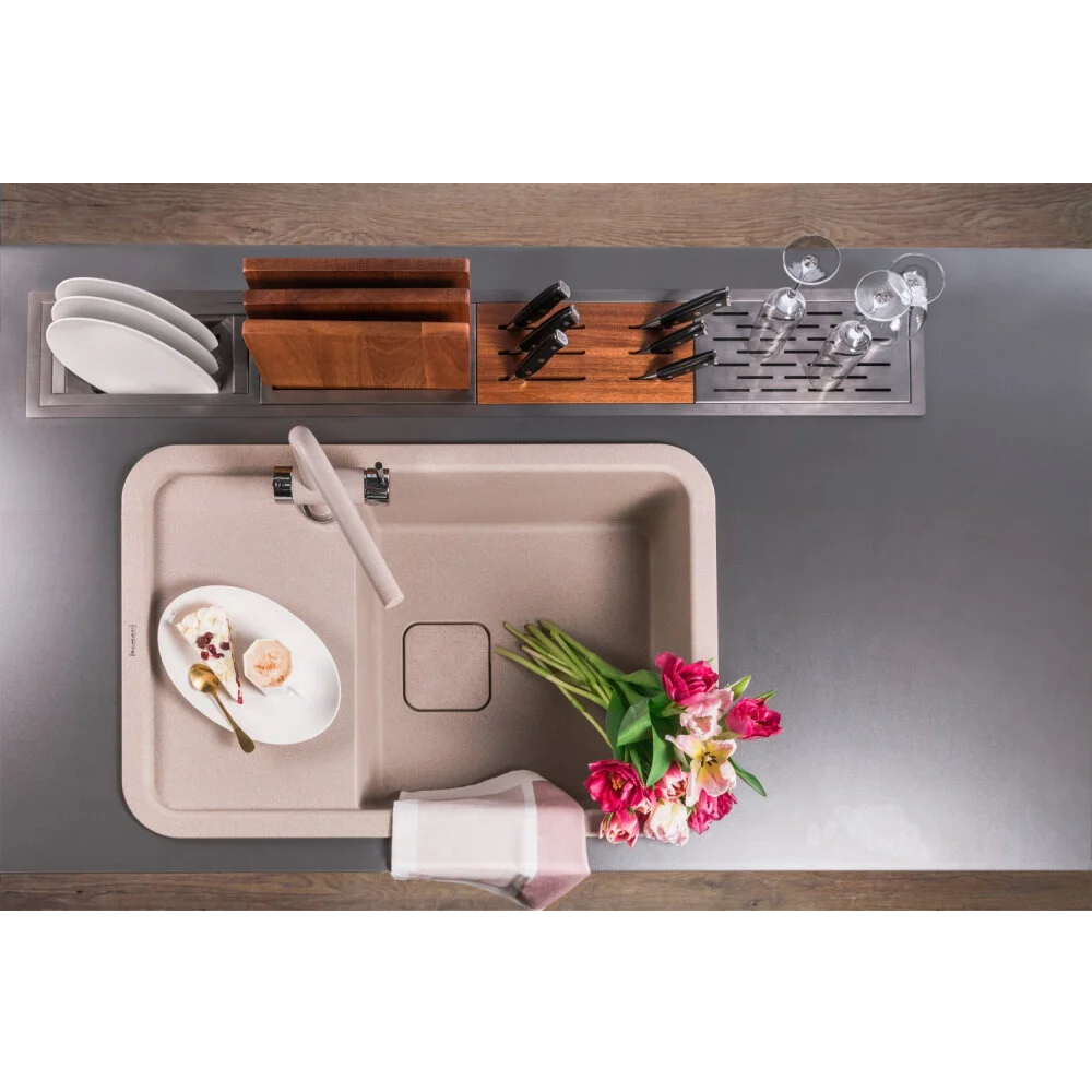 Мойка кухонная Omoikiri из коллекции Tasogare 86-CA имеет размеры 860х510 мм., изготовлена из искусственного гранита. Форма — прямоугольная, одна чаша без отверстия для смесителя. Сифон в комплекте. Ширина чаши 44. Врезной монтаж.