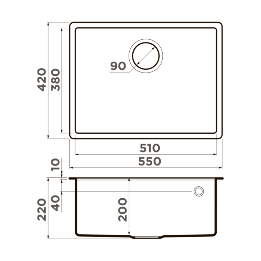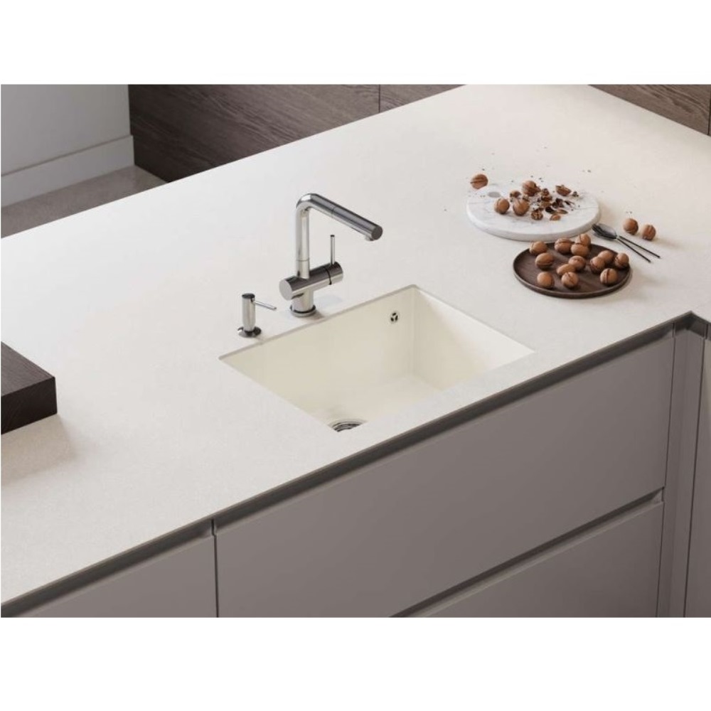 Мойка кухонная Omoikiri из коллекции Tedori 54-U-ES имеет размеры 550х420 мм., изготовлена из искусственного гранита. Форма — прямоугольная, одна чаша без отверстия для смесителя. Сифон в комплекте. Ширина чаши 51. Подстольный монтаж.