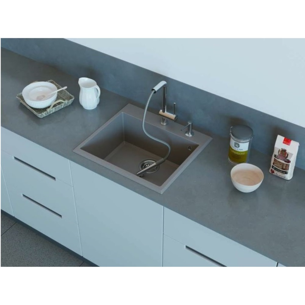 Мойка кухонная Omoikiri из коллекции Tedori 57-BE имеет размеры 570х510 мм., изготовлена из искусственного гранита. Форма — прямоугольная, одна чаша без отверстия для смесителя. Сифон в комплекте. Ширина чаши 51. Врезной монтаж.