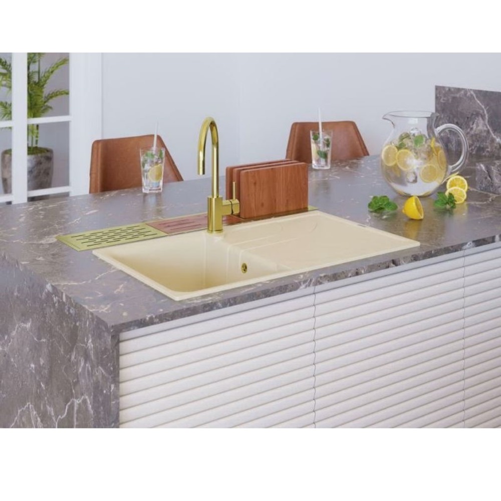 Мойка кухонная Omoikiri из коллекции Yasugata 86-PL имеет размеры 860х500 мм., изготовлена из искусственного гранита. Форма — прямоугольная, одна чаша без отверстия для смесителя. Сифон в комплекте. Ширина чаши 34. Врезной монтаж. Имеется крыло.