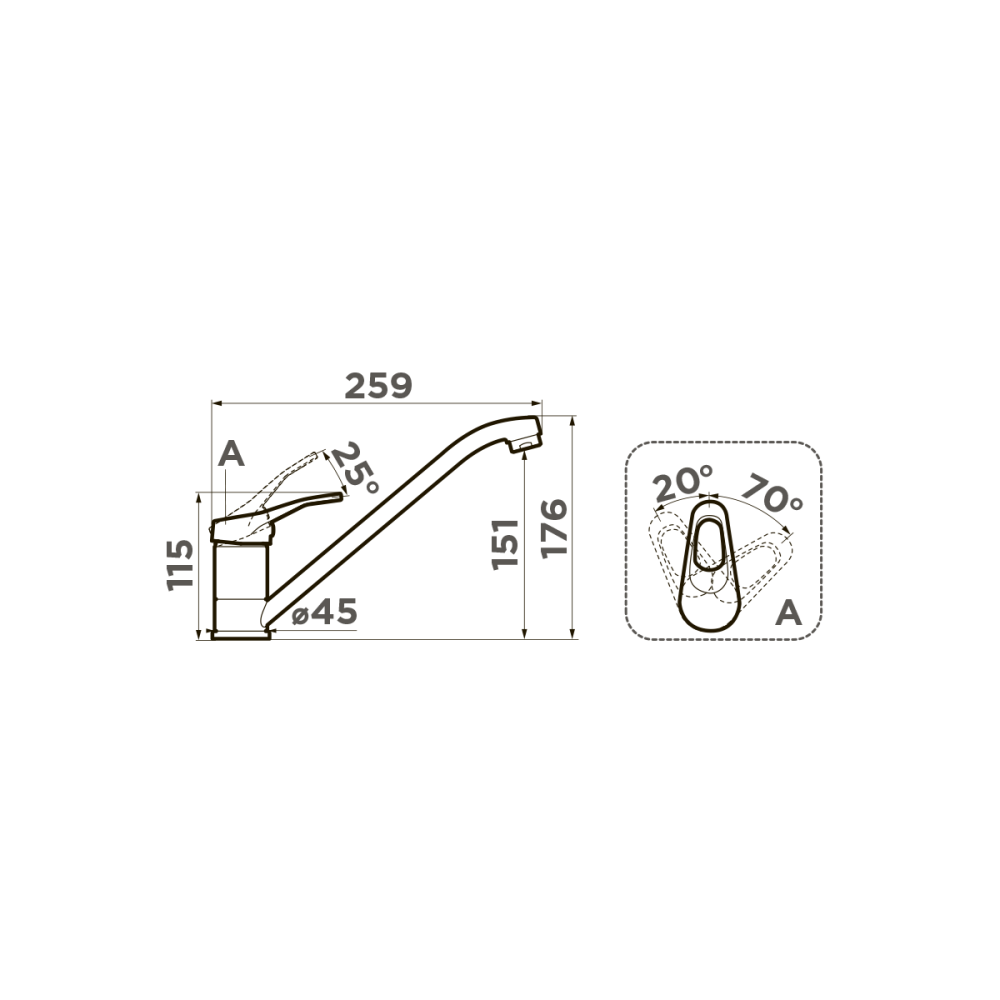 Смеситель для кухни Omoikiri Kado оснащен рычажным управлением для регулировки температуры и напора воды. Горизонтальный монтаж на 1 отверстие. Поворотный излив 259 мм.