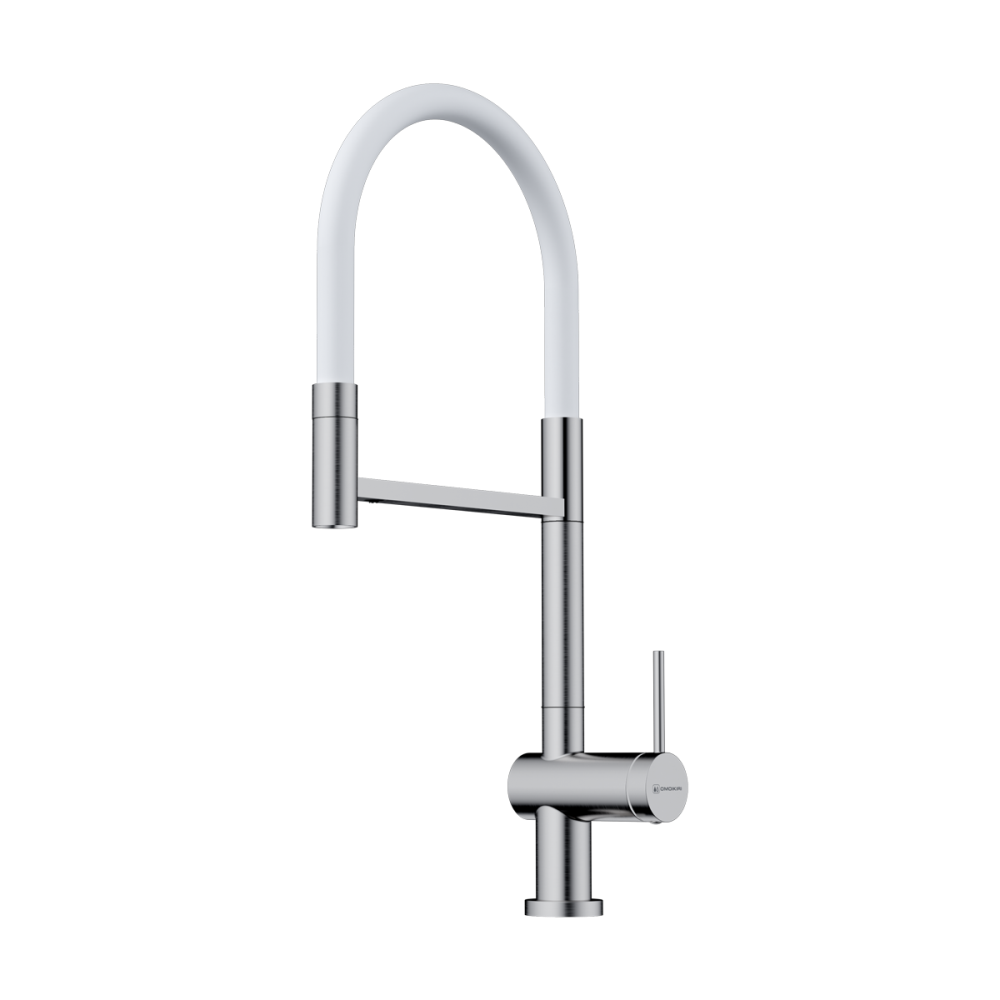 Смеситель для кухни Omoikiri Kanto-2 Plus с подключением фильтра оснащен рычажным управлением для регулировки температуры и напора воды. Горизонтальный монтаж на 1 отверстие. Гибкий излив 220 мм.