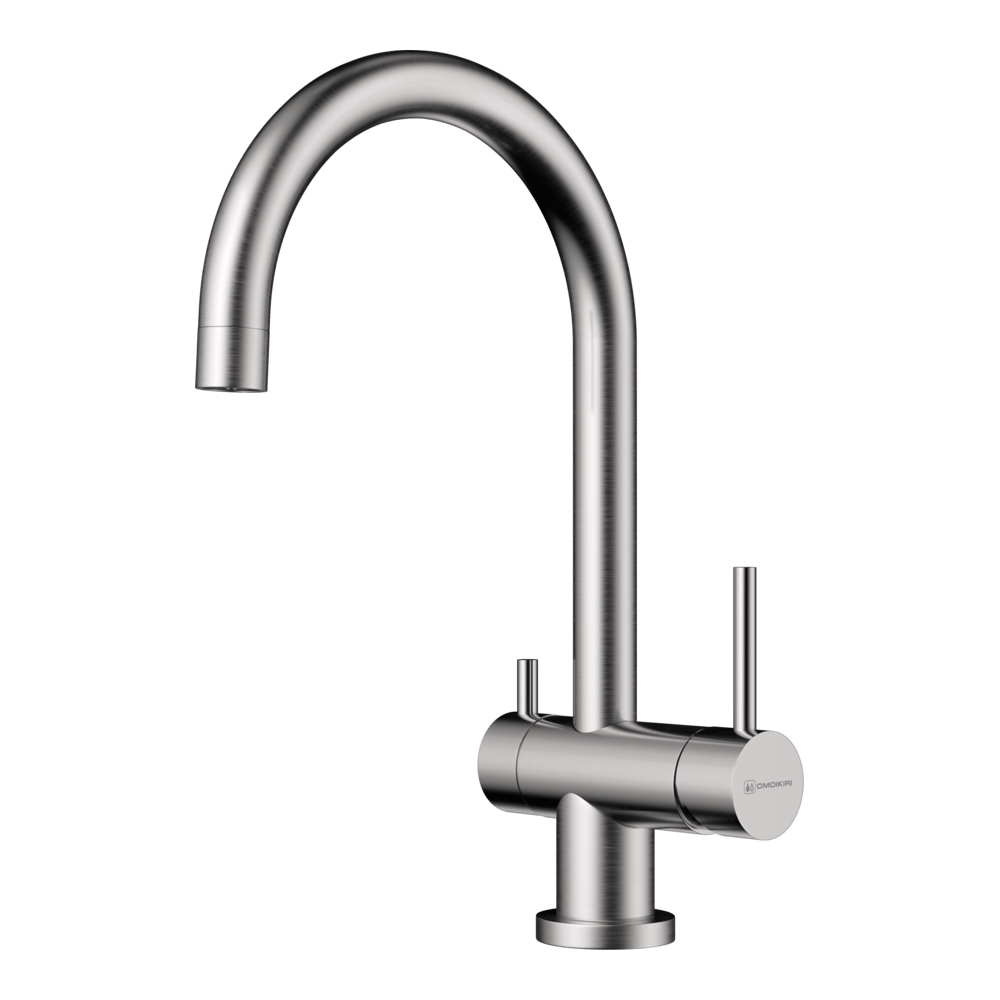 Смеситель для кухни Omoikiri Yamada с подключением фильтра оснащен рычажным управлением для регулировки температуры и напора воды. Горизонтальный монтаж на 1 отверстие. Поворотный излив 204 мм.